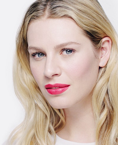 Jam-packed calendar? Crazy-busy mornings? Just plain time-starved? When you have approximately 4.3 minutes to pull together a polished makeup look, reach for a coral lipstick. Brighter than a true crimson, yet punchier than pink, coral is a warm red that plays well with every skin tone and magically makes your entire face glow. The best part: There are no complicated techniques or tools required. To get the look right, it’s all about keeping the rest of your makeup simple—think radiant, healthy skin and inky black lashes—for an overall effect that’s chic and clean, but with a pop. Watch how it’s done, then get the step by step below.