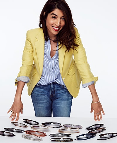 “A cat-eye frame, like this one by Garrett Leight x Clare V., paired with the bright, punchy lip gives an Old Hollywood Glamour vibe that is very fresh and modern right now,” says Negar. Clinique Pop Lip Colour + Primer in Poppy Pop is the perfect coral with a demi-matte finish.