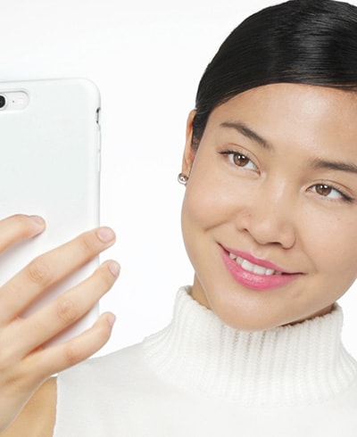 Sweep Cheek Pop in Rosy Pop across cheekbones in one direction only, from apples to temples—not back and forth—for the most definition. Then, go for a bright lipstick shade that’ll pop on camera. Try Pop Lip Colour + Primer in Punch Pop, a vibrant fuchsia. Shy to go bold? Even the brightest holiday shades are easy to pull off with this tip from Bo: “Use your fingertip to lightly tap lipstick onto the centre of lips, then blend the colour outwards,” she says. “This trick makes lips look healthy, fuller and flushed.”