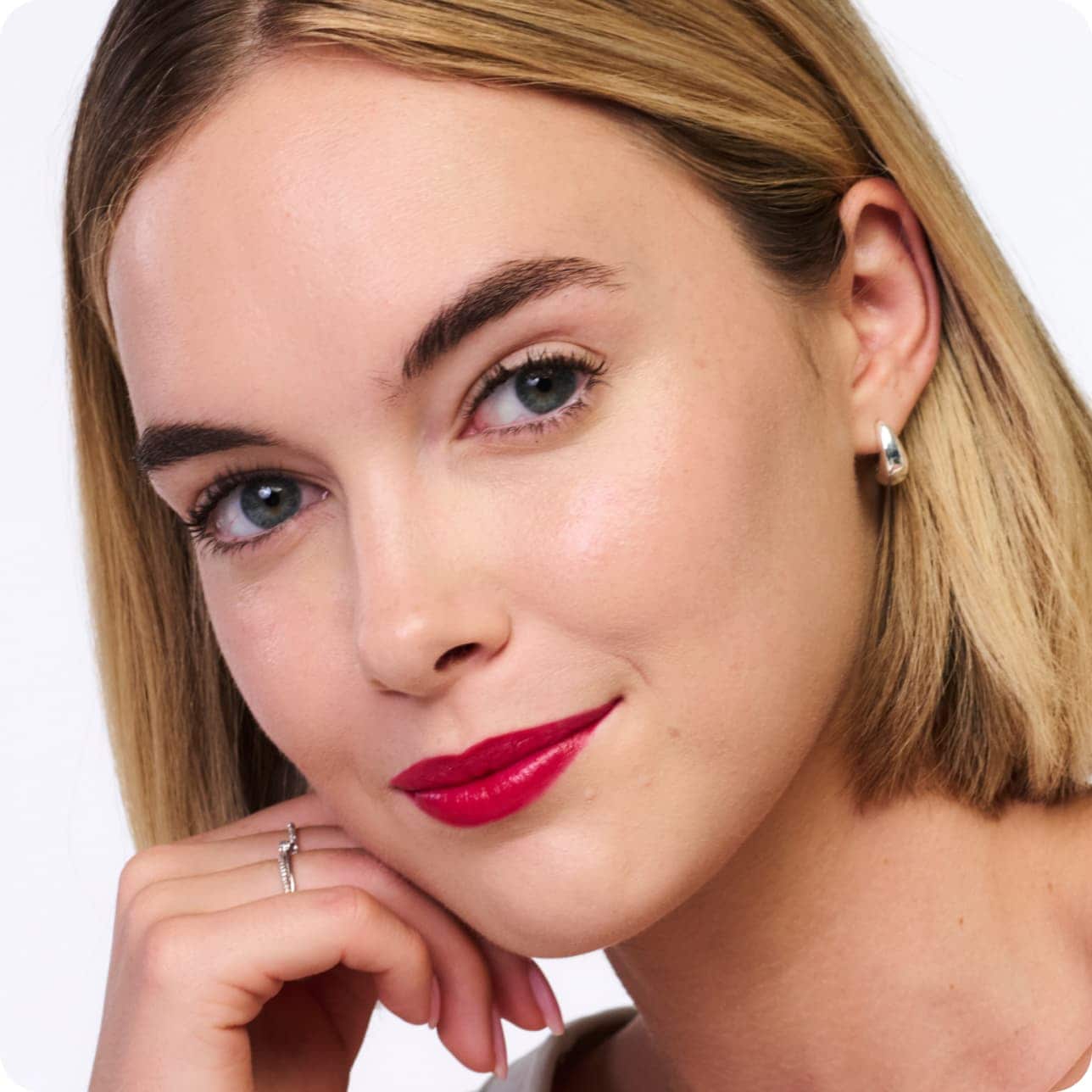 For bold lips, our long-wearing lip color with built-in primer in Cherry Pop.