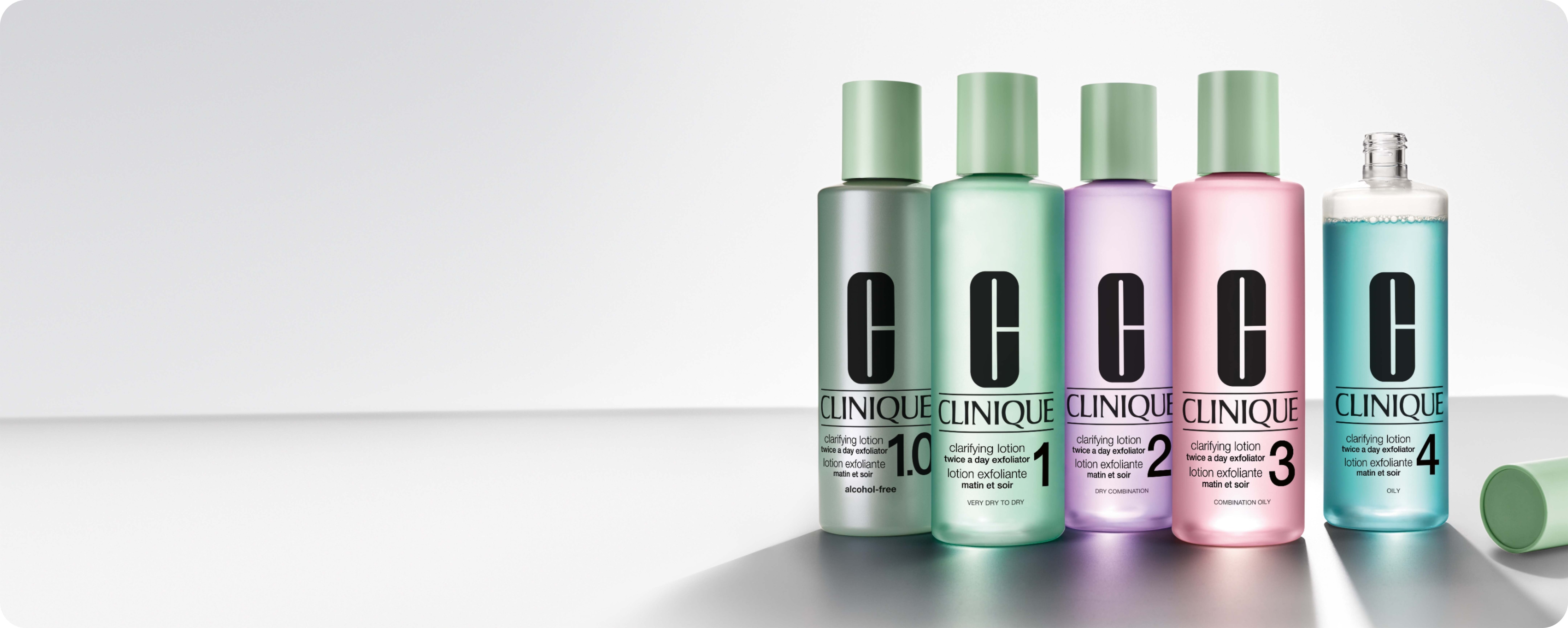 Clinique Clarifying Lotion is available in 5 skin-typed formulas.